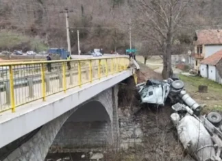 Prema trenutnim informacijama, kamion mikser je sletio sa mosta.