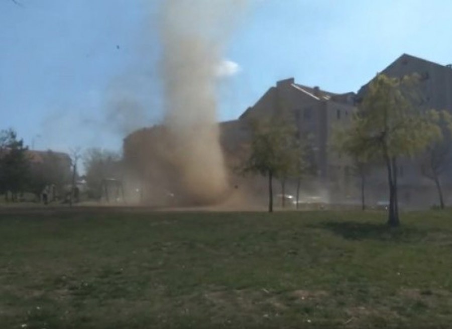Dječiji park u Nišu pogodila je pijavica poput tornada koja je bacala sve oko sebe u gustom dimu prašine.