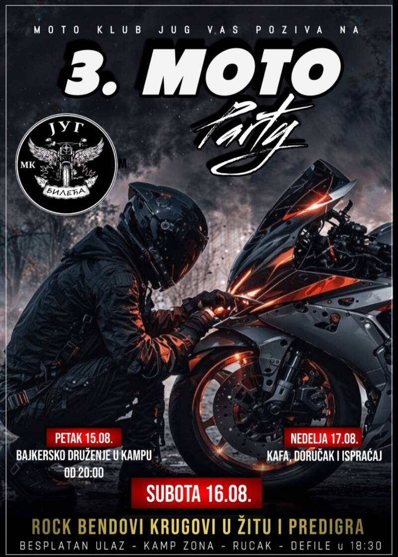 Predstojeći vikend u Bileći biće u znaku motora. U parku „Bećaruša“ biće održan treći moto skup u organizaciji Moto kluba „Jug“ Bileća. Defile bajkera planiran je za subotu u 18:30 časova nakon čega slijedi druženje u kampu. Prisutne će zabavljati rok bendovi „Krugovi u žitu“ i „Predigra“.