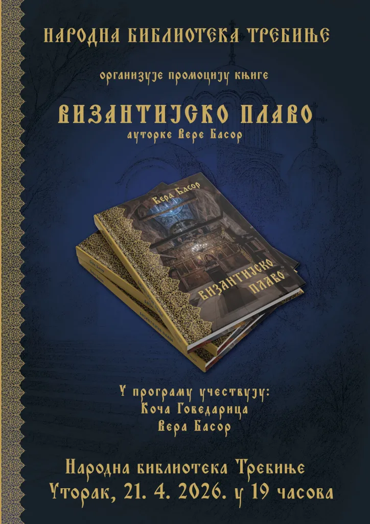 U Narodnoj biblioteci Trebinje sutra naveče biće organizovana promocija zbirke poezije „Vizantijsko plavo“ autora Vere Basor.