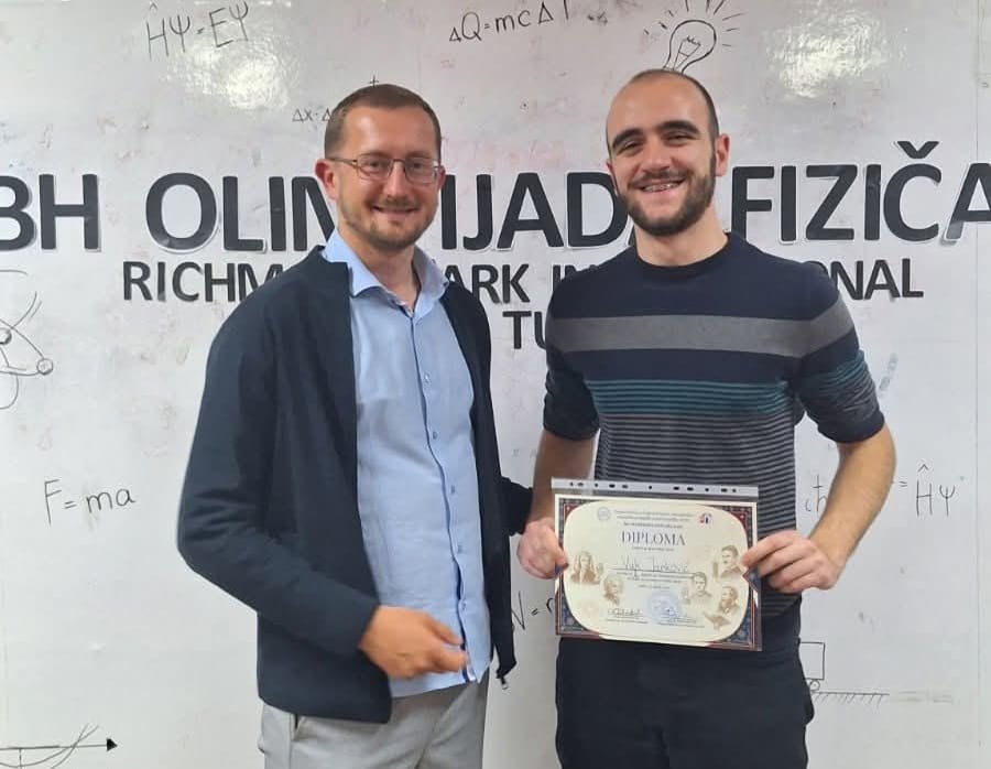 On je u Tuzli osvojio drugo mjesto sa pola poena manje od prvoplasiranog učenika, a to podrazumijeva da se plasirao na Međunarodnu fizičku olimpijadu u Kolumbiji od 4. do 12. jula, kao i na Evropsku fizičku olimpijadu u Švedskoj od 12. do 16. juna.