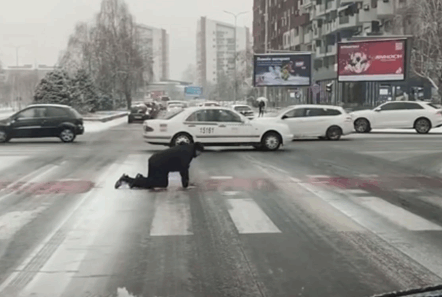 Jedan neimenovani čovjek je snimljen kako puzi po pješačkom prelazu u Opštini Aerodrom, u Skoplju, a video je ubrzo postao viralan na društvenim mrežama.